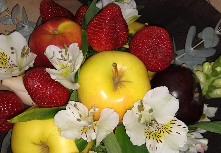 Las frutas que se utilizan en los arreglos dulces son: fresas, manzanas, melón, sandía, melón chino, papaya, uvas rojas y verdes, carambolo, mango, kiwi, piña y algunas frutas estacionales como la zarzamora y la mora azul.