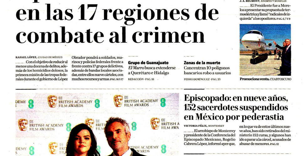 -Reforma: Y el titular de SCT omite depa texano -El Universal: Vamos por empresas tramposas, afirma SAT -La Jornada: Será el pueblo el que decida sobre Huexca: AMLO -Milenio Diario: Operan 9 cárteles en las 17 regiones de combate al crimen -Excélsior: Excluyen del Conahcyt a universidades -El Financiero: La Sedena será administrador de Santa Lucía -El Economista: México, el sexto mayor armador de vehículos -La Razón: Acusan mujeres alza en violencia digital... y van por castigo con cárcel -24 Horas: Santa Lucía, en tres años: AMLO... y revive proyecto de Tizayuca -Reporte Indigo: SCJN, contra las cuerdas -La Crónica de Hoy: Gana $13 mil en un día una familia huachicolera -El Sol de México: Confiamos en que se respeten los contratos