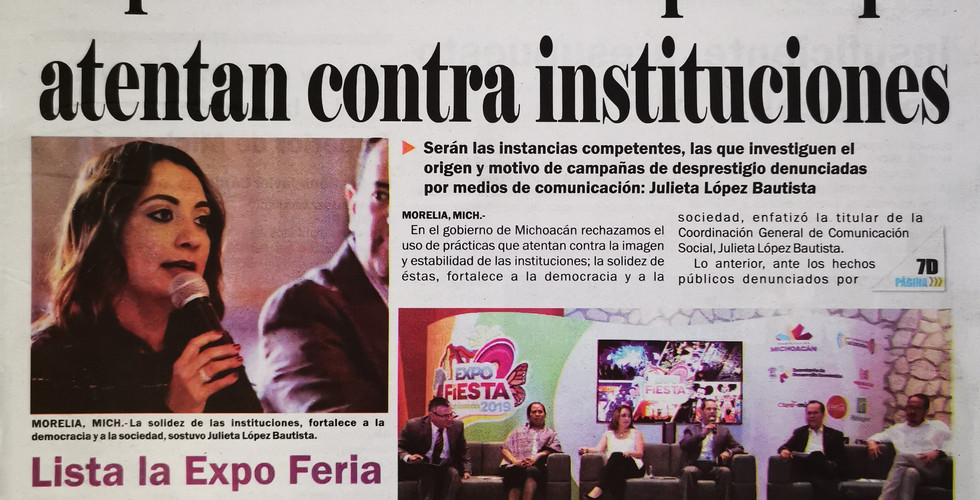 La Voz de Michoacán: Lago de Zirahuén, en grave deterioro. Cambio de Michoacán: Ratifican multa de 572 mdp a ex titular de Finanzas. El Sol de Morelia: Aumenta costo por el uso de autopistas. Diario abc de Morelia: Reprueba CGCS campañas que atentan contra instituciones. Diario abc de la Costa: Se recuperarán áreas verdes, no se venderán: Ayuntamiento. La Opinión de Michoacán: Cercanía y atención a la población, clave para encarar retos del 2019: Silvano Aureoles Publimetro: “Ojalá no retrocedamos en 2024, porque no habrá reelección”.