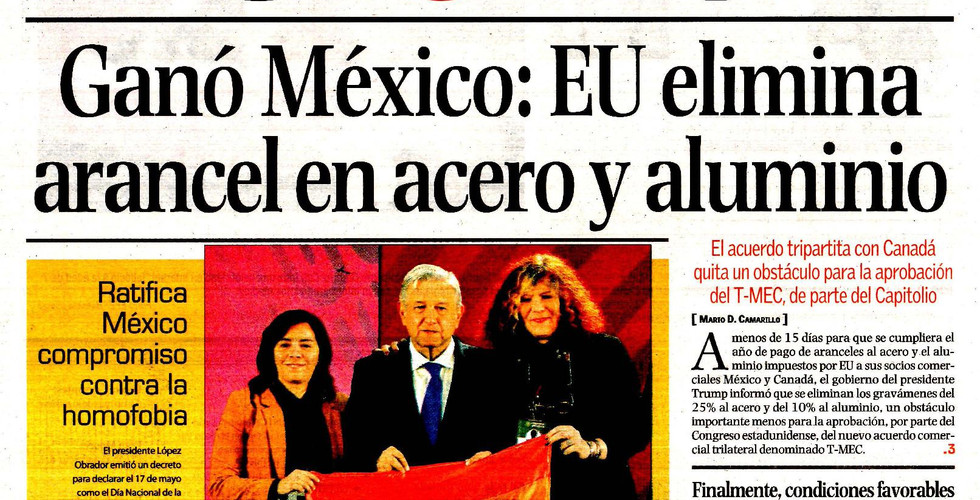 -Reforma: Operaban ex Góber y narcos, acusa EU -El Universal: Paguen la luz, pide AMLO a tabasqueños -La Jornada: Halla el Ejército en Jalisco finca donde disolvían cuerpos -Milenio Diario: Posponen otro año la certificación policiaca con todo y la Guardia -Excélsior: Terminan 4 días de contingencia -La Razón: EU liga con narco a exgobernador de Nayarit; México le congela cuentas -La Crónica de Hoy: Ganó México: EU elimina arancel en acero y aluminio -El Sol de México: EU elimina aranceles al acero de México y Canadá