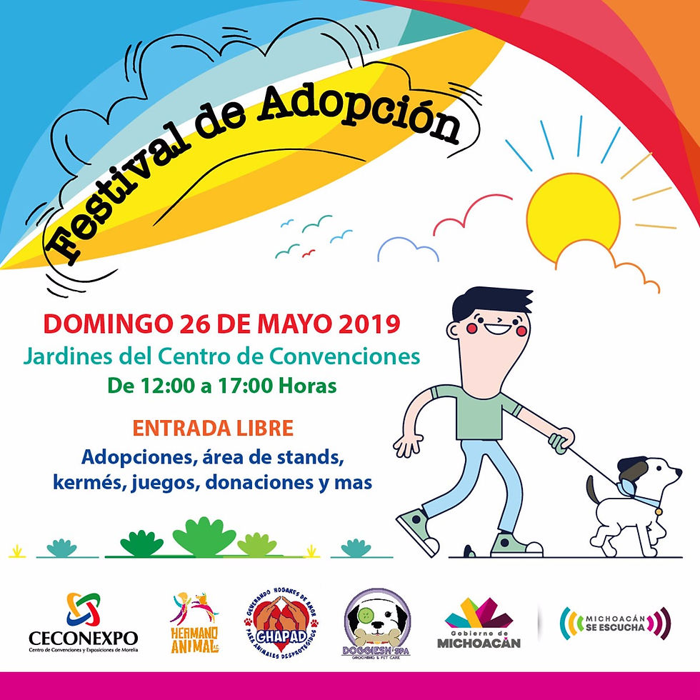 Para cumplir el objetivo de fomentar la cultura de adopción de mascotas, la asociación civil Hermano Animal, realizará el próximo domingo 26 de mayo, su gran Feria de la Adopción, que tendrá lugar de las 12 a las 17 horas, en los jardines del Centro de Convenciones y Exposiciones de Morelia (Ceconexpo). En esta gran Feria, se pondrá a disponibilidad de las y los asistentes una veintena de perritos desparasitados, esterilizados y vacunados, para quienes deseen adoptar una mascota. Asimismo, diversos expositores ofrecerán accesorios y demás souvenirs para las mascotas; sin dejar de lado las necesarias plaquitas de identificación, para que en caso de extravío, se facilite al perro o gato regresar a su hogar. Quienes deseen ayudar a la asociación, dedicada a rescatar a animales en situación de calle y/o abandono, pueden realizar donativos en especie como croquetas, material de limpieza, accesorios, entre otros. Hermano Animal A.C. recomienda a los propietarios de perros o gatos, que en esta temporada de altas temperaturas, mantengan a sus mascotas bien hidratadas y coloquen por fuera de sus casas un recipiente con agua, para ayudar a los animalitos en situación de calle. El Centro de Convenciones es un espacio amigable con las mascotas, por lo que también se invita a quienes acudan a llevar bolsas de plástico recicladas para colocarlas en los dispensadores que este lugar instaló en sus jardines, a fin de que posteriormente, puedan ser usadas por los paseantes para recoger las heces de sus perros o gatos.