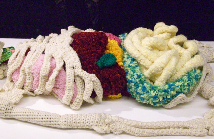 La artista canadiense Shanell Papp trabaja con muchos medios, pero fue su habilidad para tejer con aguja y su fascinación con la anatomía lo que la llevó a a crear a Bawdy, un modelo de tamaño real del cuerpo humano. Este proyecto de investigación inició en 2005, cuando tejió un modelo anatómicamente correcto con órganos removibles cuando era estudiante de arte en la Universidad de Lethbridge.